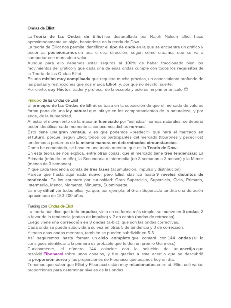 La teoría de Elliot nos permite identificar el tipo de onda en la que se encuentra un gráfico y
