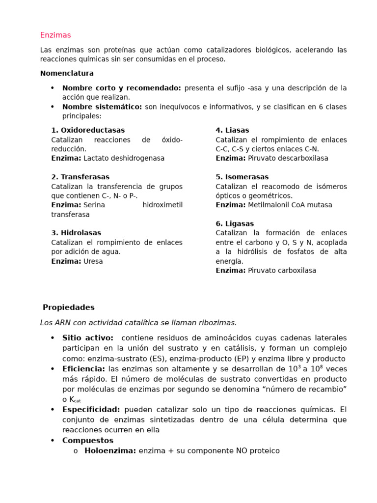 o Apoenzima: enzima sin su componente no proteico, carece de