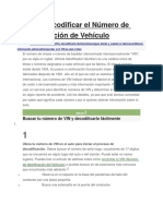 COMO FUNCIONA? Cada carcter o dgito tiene un propsito en particular. Son los siguientes: *El primer nmero de caracteres de identificacin del vehculo (VIN), el nmero de serie, se indica el pas de que se haya fabricado el vehculo. En primer lugar la identificacin del vehculo nmero de dos dgitos: [Link]. (1 o 4), Canad (2), Mxico (3), Japn (J), Corea (K), Inglaterra (S), Alemania (W), Italia (Z). *Segundo nmero de identificacin del vehculo dgito especifica el fabricante. Audi (A), BMW (B), Buick (4), Cadillac (6), Chevrolet (1), Chrysler (C), Dodge (B), Ford (F), GM Canada (7),
