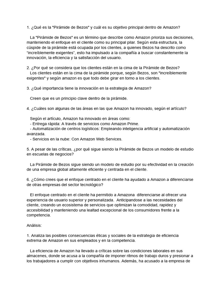 1. ¿Qué es la "Pirámide de Bezos" y cuál es su objetivo principal dentro de Amazon?