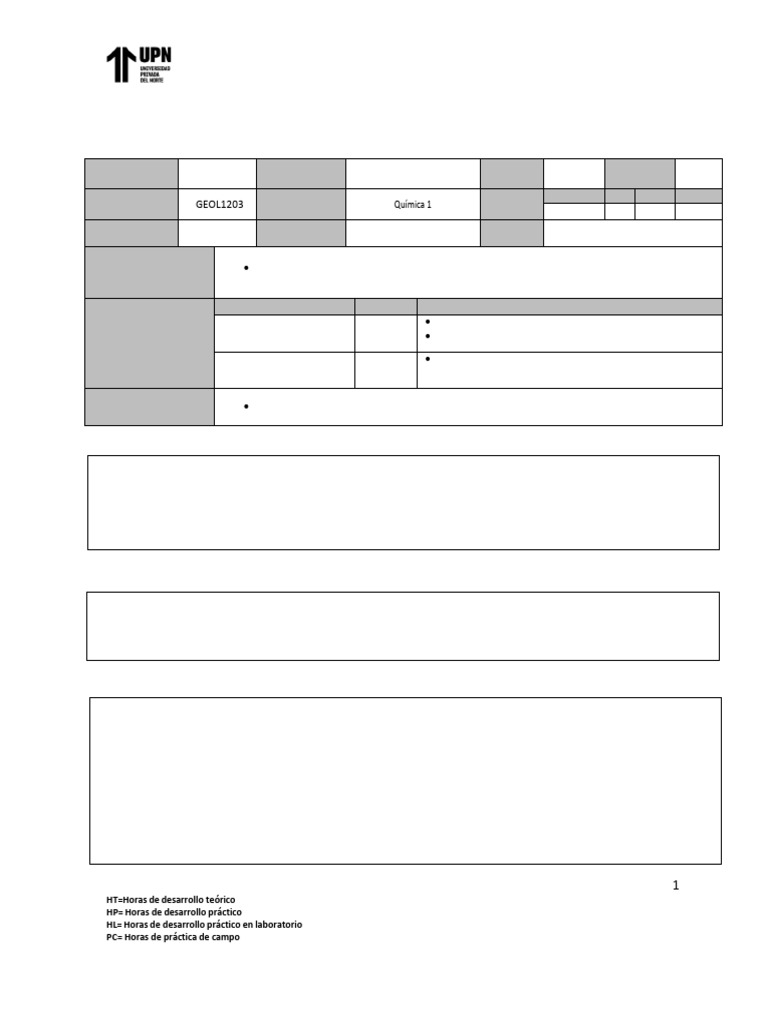 Código de curso GEOL1203 Requisitos Química 1 Horas 2 2 0 0