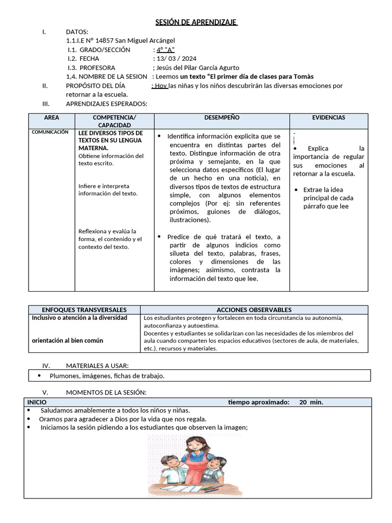 1,4. NOMBRE DE LA SESION : Leemos un texto “El primer día de clases para Tomàs