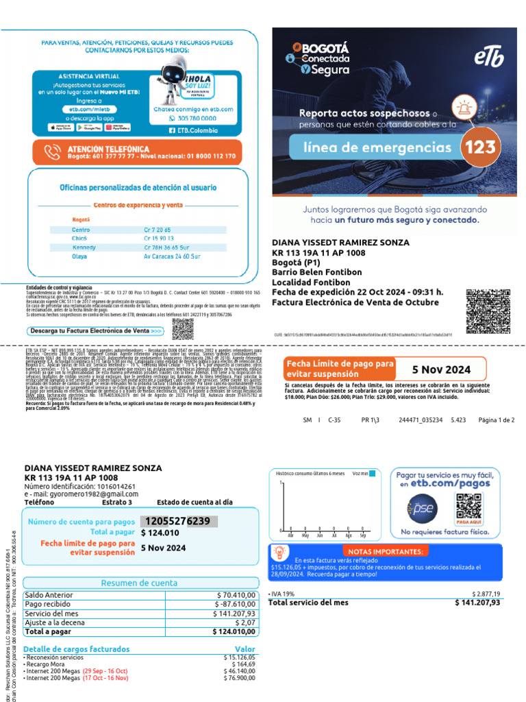 o predio) ya que son tu responsabilidad. De esta manera prevendrás posibles fraudes con la línea. Además, ETB tiene a tu disposición los