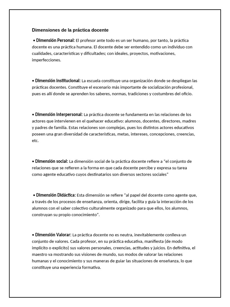 Dimensiones de la práctica docente