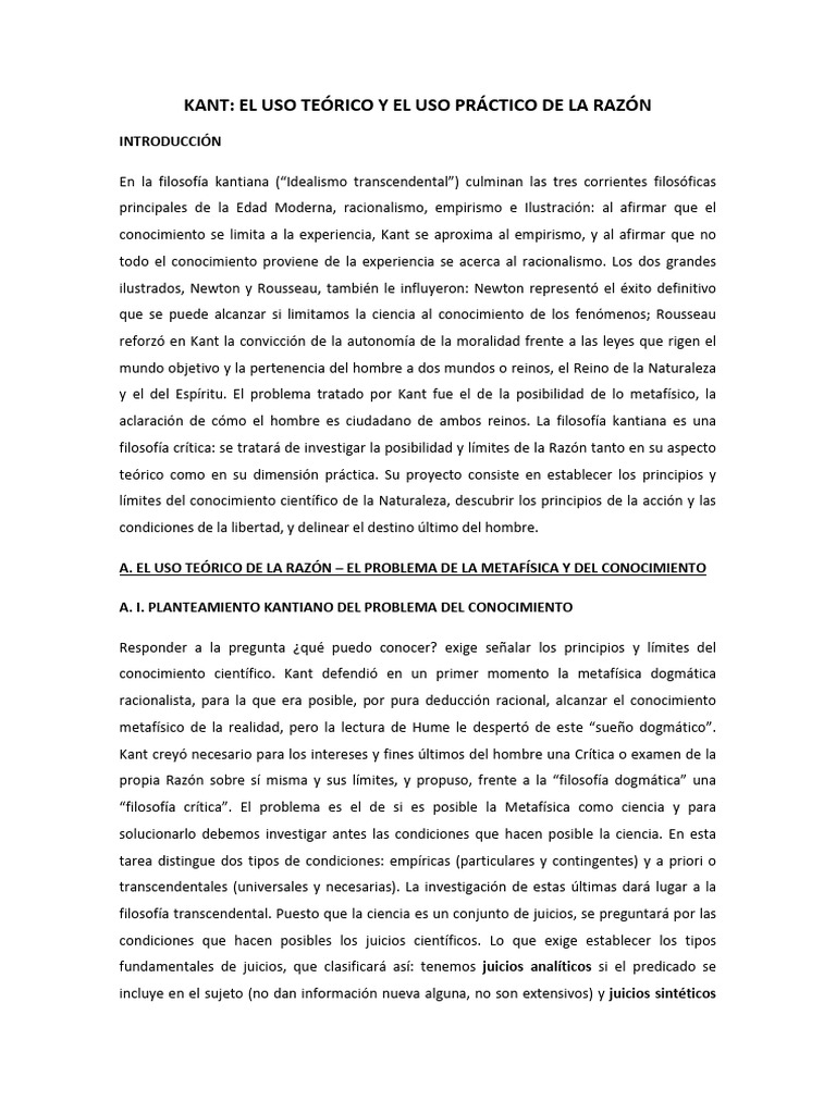 KANT: EL USO TEÓRICO Y EL USO PRÁCTICO DE LA RAZÓN