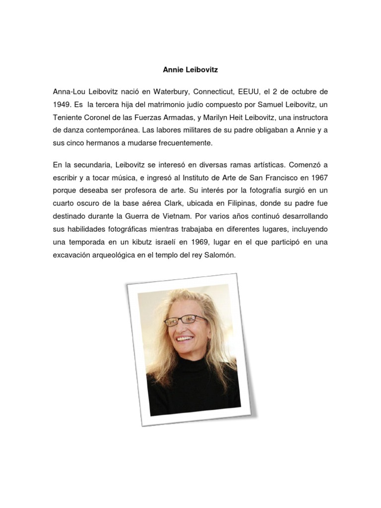 Annie Leibovitz Anna-Lou Leibovitz naci en Waterbury, Connecticut, EEUU, el 2 de octubre de 1949.