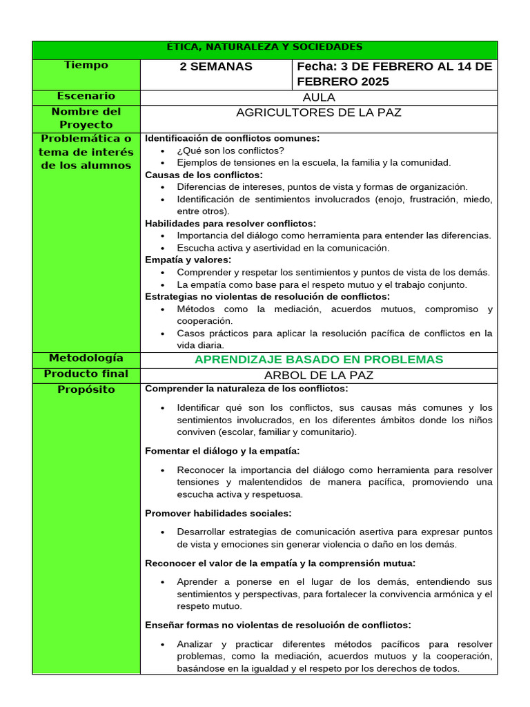 del conflicto, emociones involucradas, y propuesta de solución pacífica. Proyecto de