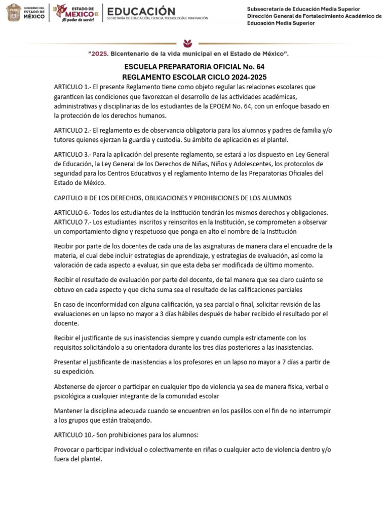 REGLAMENTO ESCOLAR CICLO 2024-2025