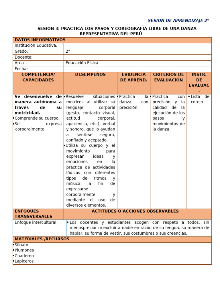 SESIÓN 3: PRACTICA LOS PASOS Y COREOGRAFÍA LIBRE DE UNA DANZA