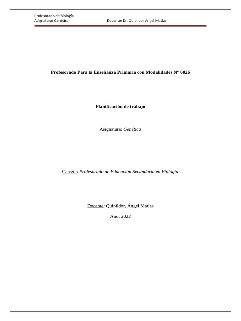 Asignatura: Genética Docente: Dr. Quipildor Ángel Matías