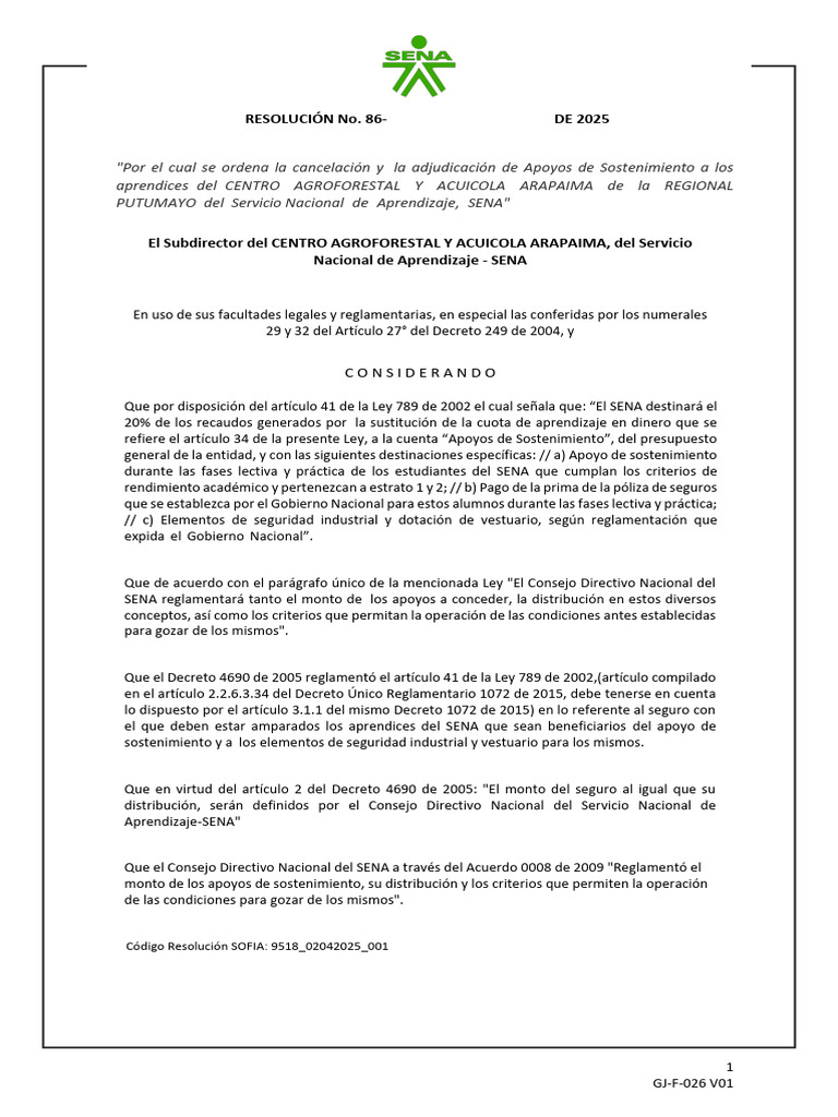 RESOLUCIÓN No. 86- 0085 DE 2025