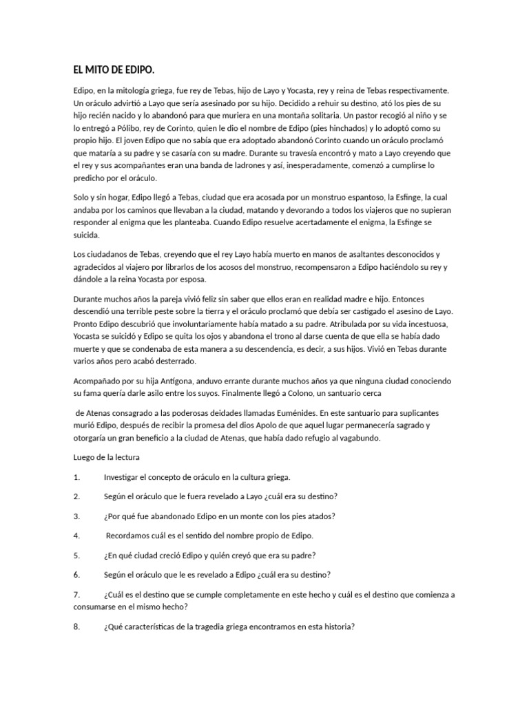 6. Según el oráculo que le es revelado a Edipo ¿cuál era su destino?