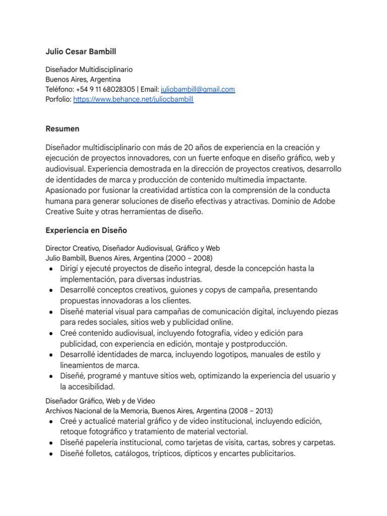 Teléfono: +54 9 11 68028305 | Email: juliobambill@[Link]