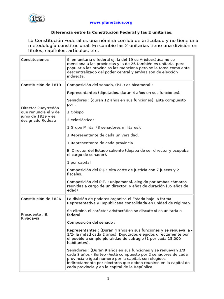 Diferencia entre la Constitución Federal y las 2 unitarias.