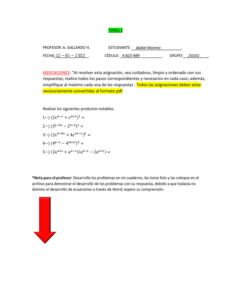 *Nota para el profesor: Desarrolle los problemas en mi cuaderno, les tome foto y las coloque en el