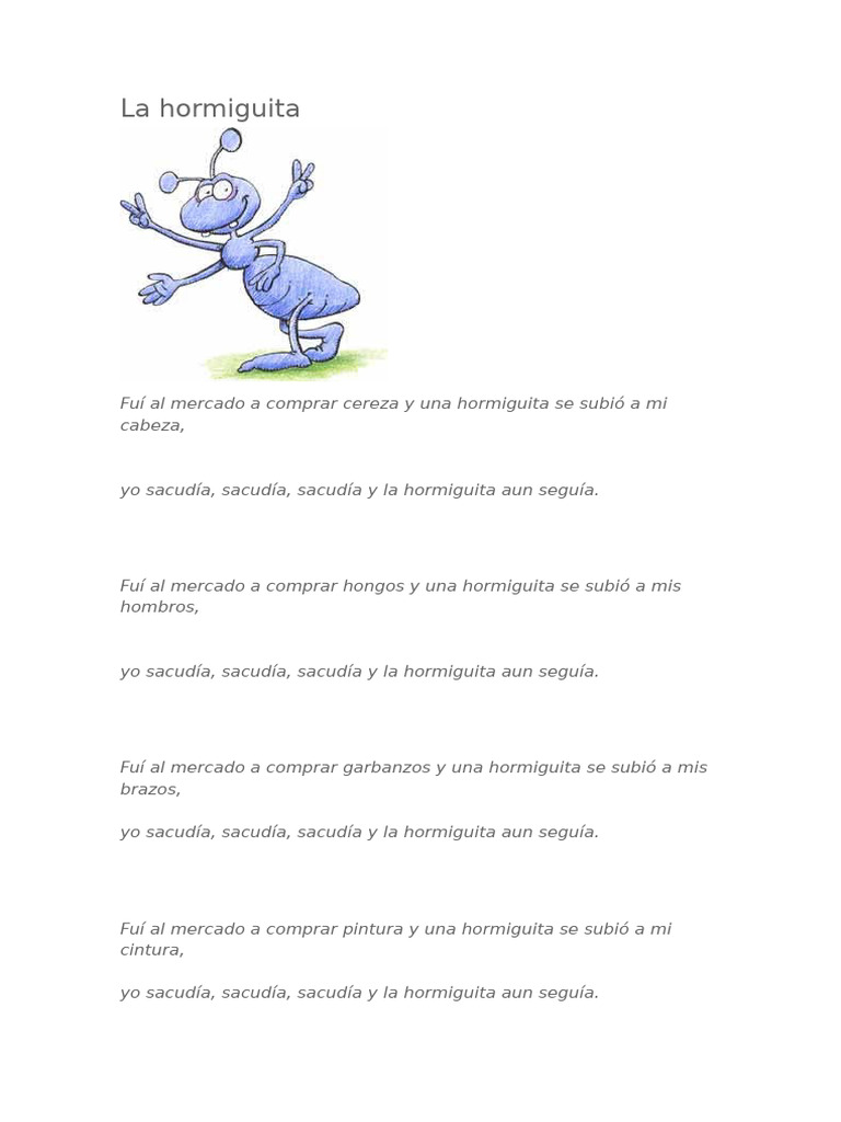 Fuí al mercado a comprar garbanzos y una hormiguita se subió a mis