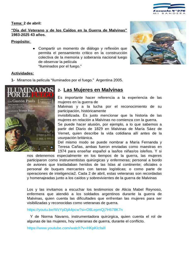 1- Miramos la película “Iluminados por el fuego.” Argentina 2005.