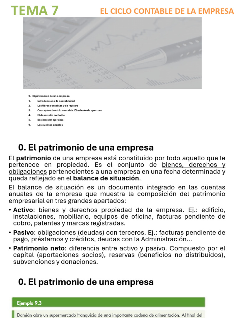 TEMA 7 EL CICLO CONTABLE DE LA EMPRESA