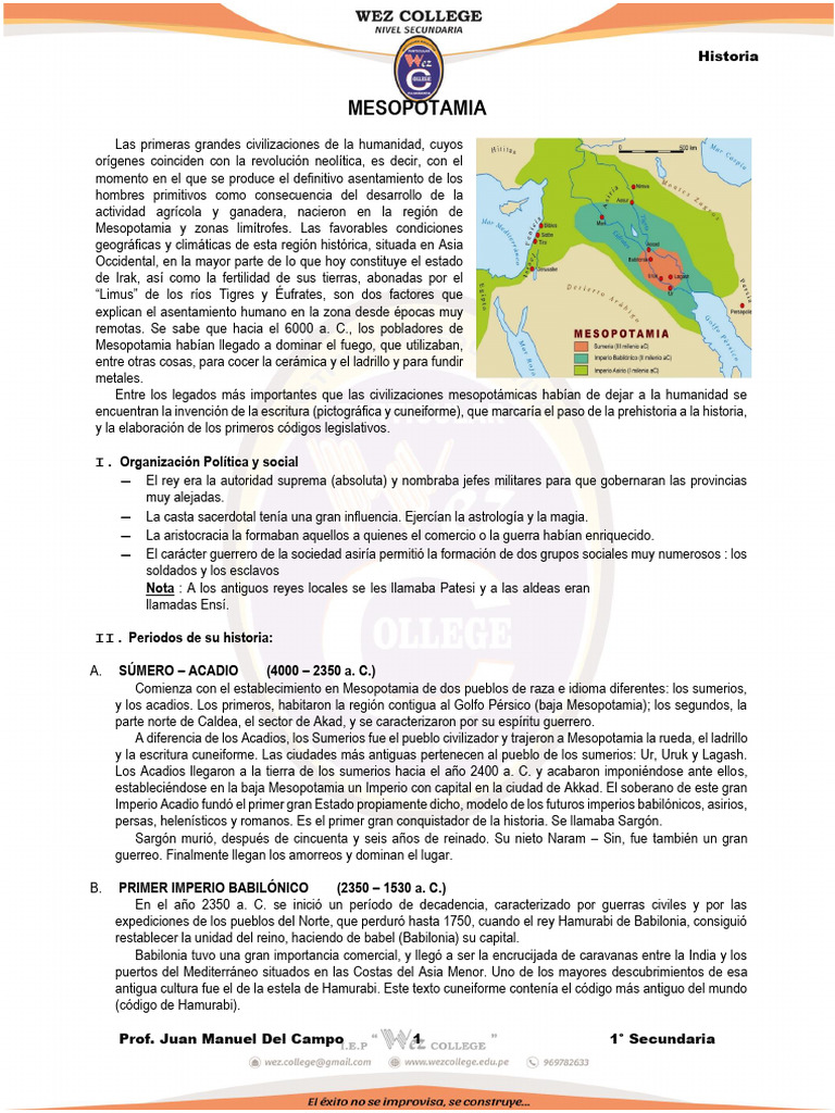 A. SÚMERO – ACADIO (4000 – 2350 a. C.)