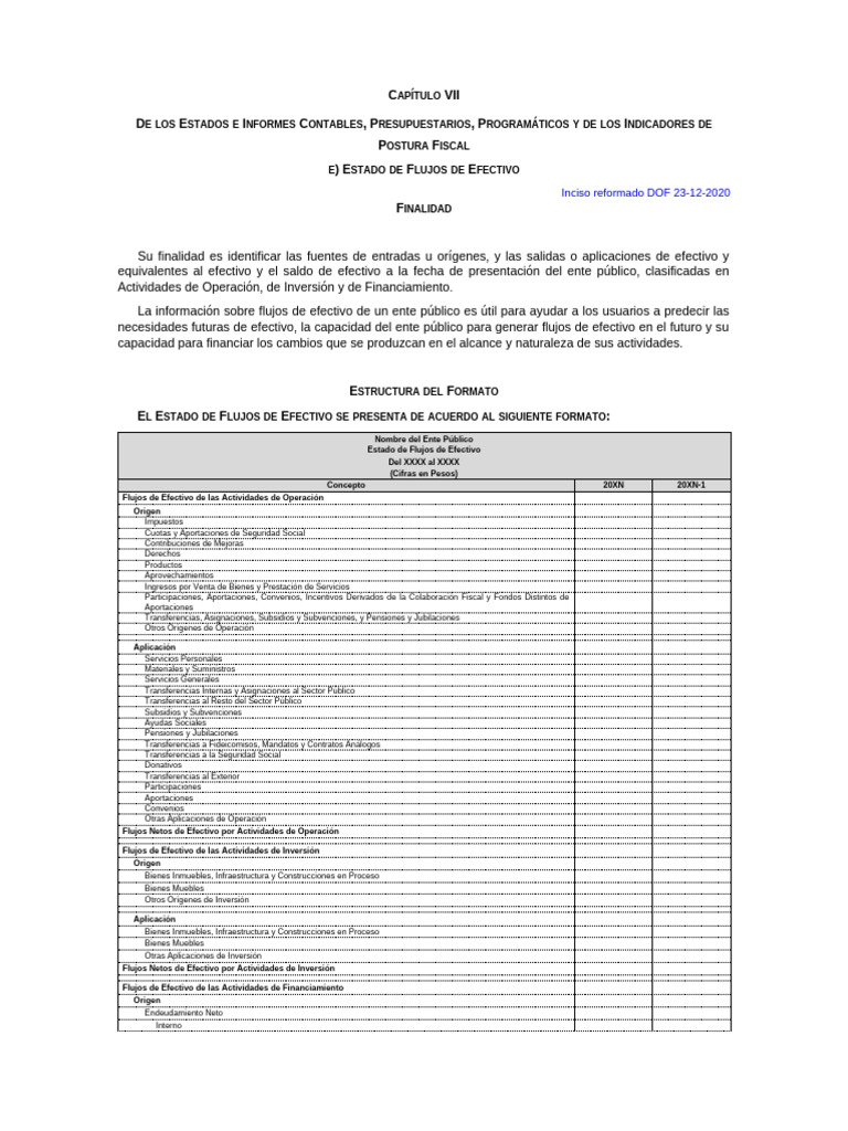 EL ESTADO DE FLUJOS DE EFECTIVO SE PRESENTA DE ACUERDO AL SIGUIENTE FORMATO:
