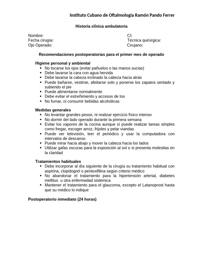 Debe incorporar al día siguiente de la cirugía su tratamiento habitual con