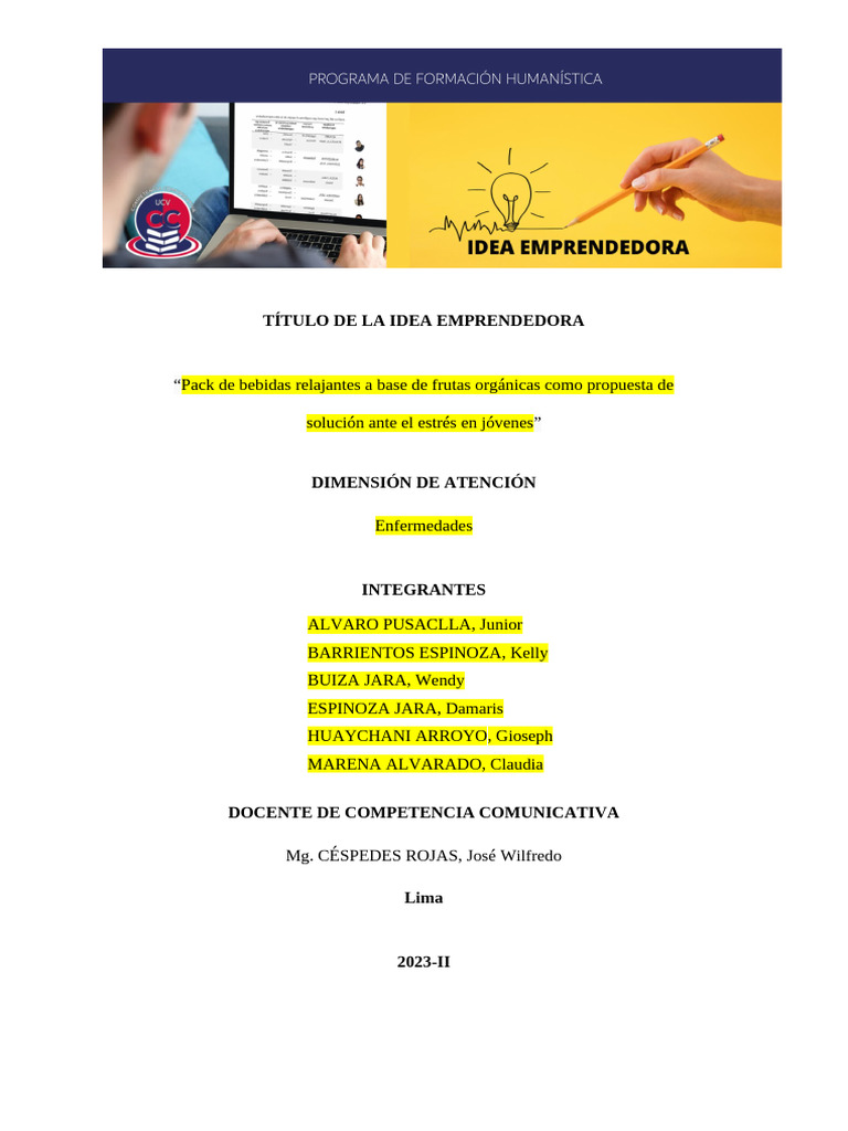 TÍTULO DE LA IDEA EMPRENDEDORA