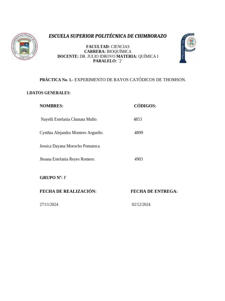 PRÁCTICA No. 1.- EXPERIMENTO DE RAYOS CATÓDICOS DE THOMSON.