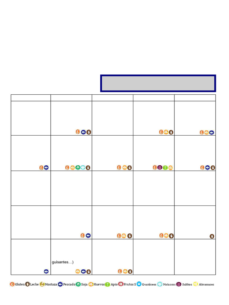 Gluten Leche Mostaza Pescado Soja Huevos Apio Frutos S. Crustáceos Moluscos Sulfitos Altramuces