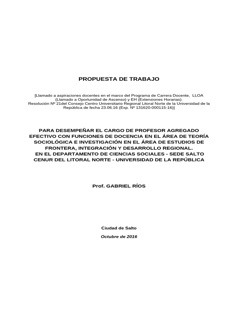 sarrollo Regional. Departamento de Ciencias Sociales. Regional Norte. Universidad de la República.