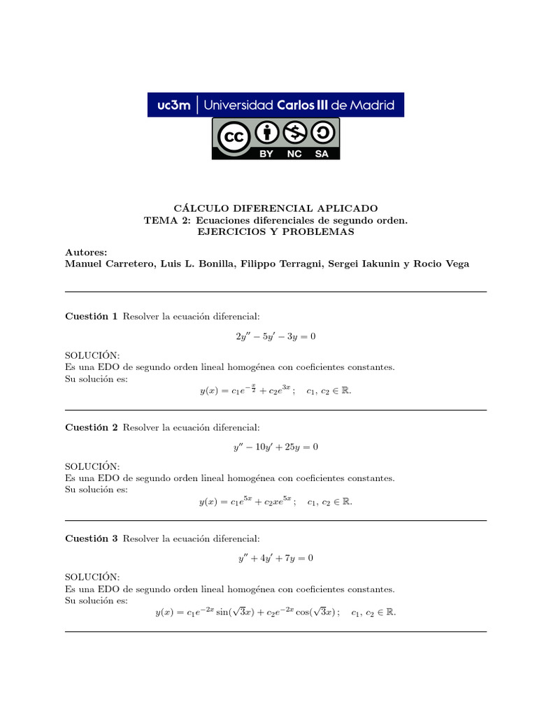 Cuestión 4 Resolver la ecuación diferencial: