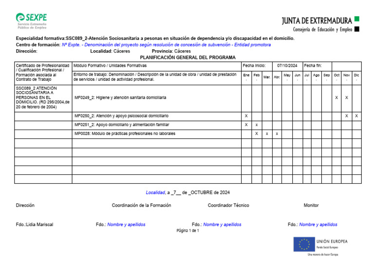 Certificado de Profesionalidad Módulo Formativo / Unidades Formativas Fecha Inicio: 07/10/2024 Fecha fin: