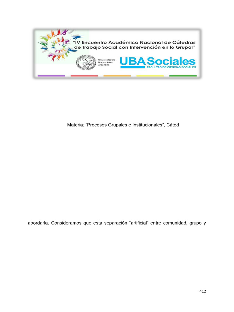 abordarla. Consideramos que esta separación “artificial” entre comunidad, grupo y