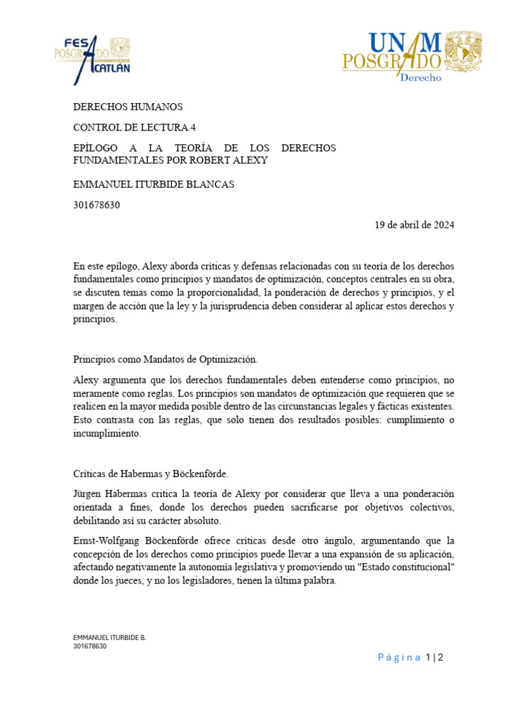 En este epílogo, Alexy aborda críticas y defensas relacionadas con su teoría de los derechos