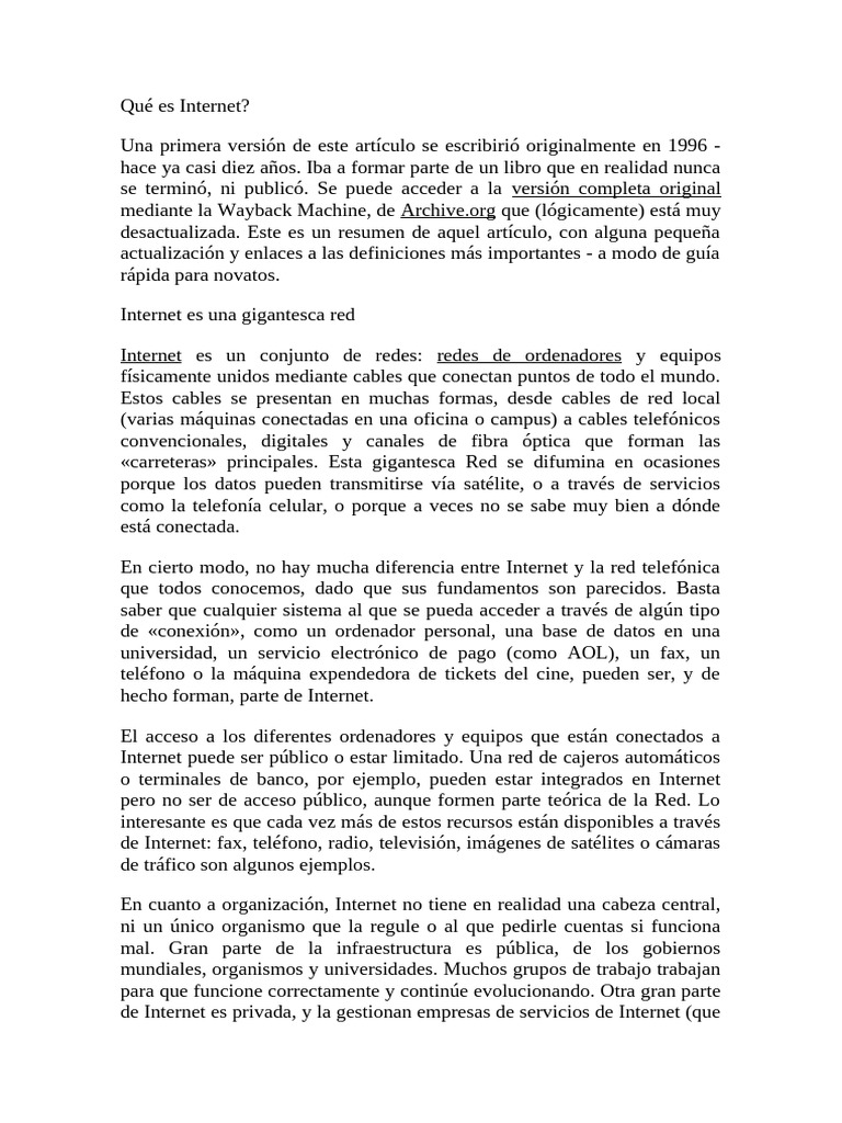 El lector puede leer muchísimo sobre los conceptos básicos de Internet, su