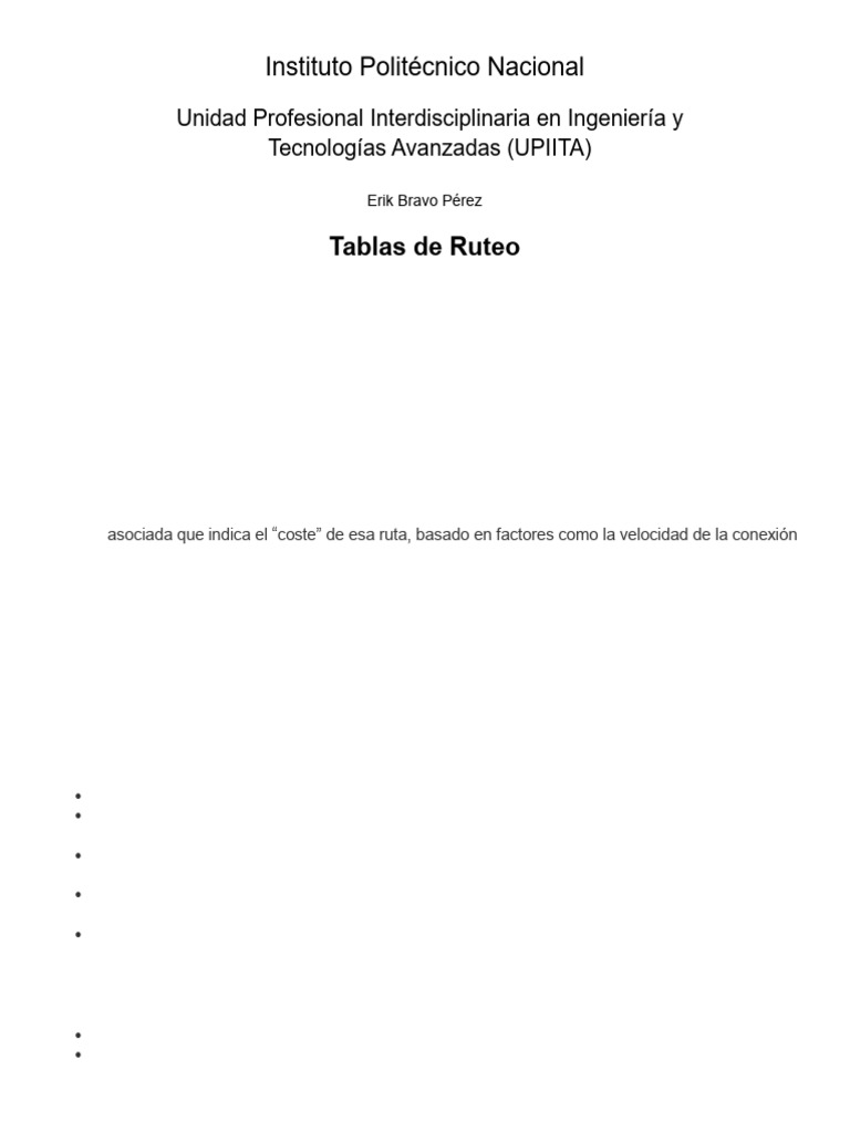 métrica asociada que indica el “coste” de esa ruta, basado en factores como la velocidad de la conexión