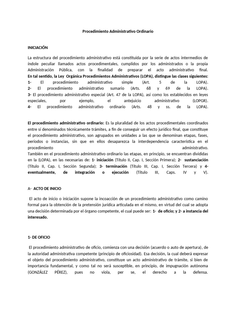 4- El procedimiento administrativo ordinario (Arts. 48 y ss. de la LOPA).