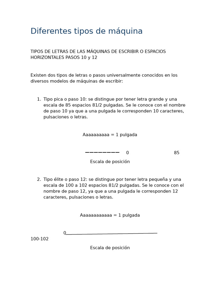 TIPOS DE LETRAS DE LAS MÁQUINAS DE ESCRIBIR O ESPACIOS