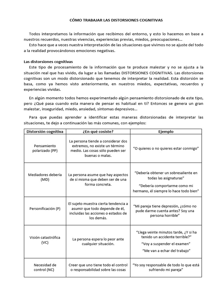 cognitivas son un modo distorsionado que tenemos de interpretar la realidad. Esta distorsión se