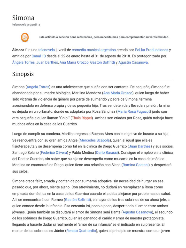 2. «Final de Simona lidera el prime time en Argentina» (https://web.archive.org/web/2018090522
