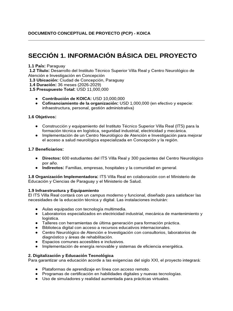 DOCUMENTO CONCEPTUAL DE PROYECTO (PCP) - KOICA