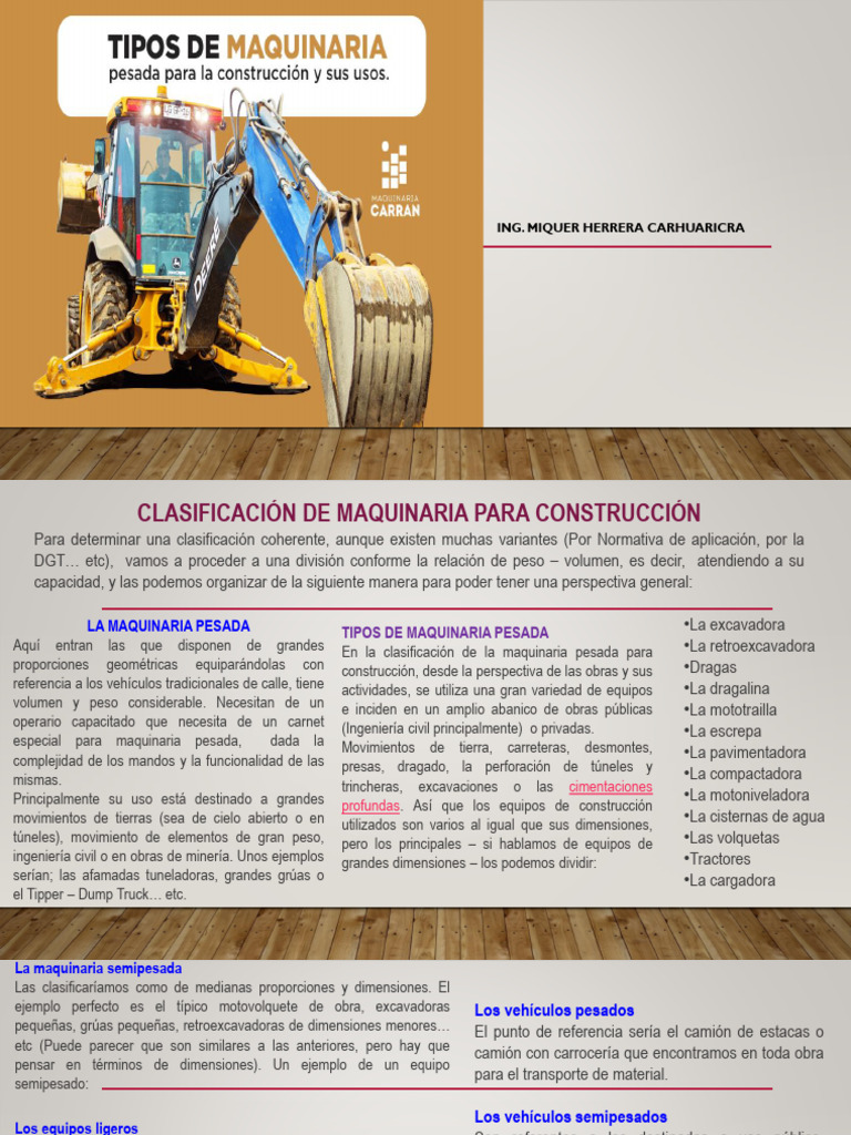 Aquí entran las que disponen de grandes En la clasificación de la maquinaria pesada para •La retroexcavadora