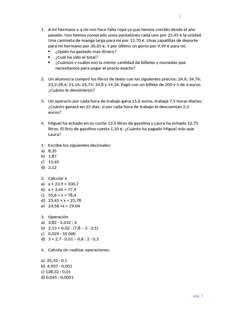 2. Un alumno/a compró los libros de texto con los siguientes precios: 24,6; 34,76;