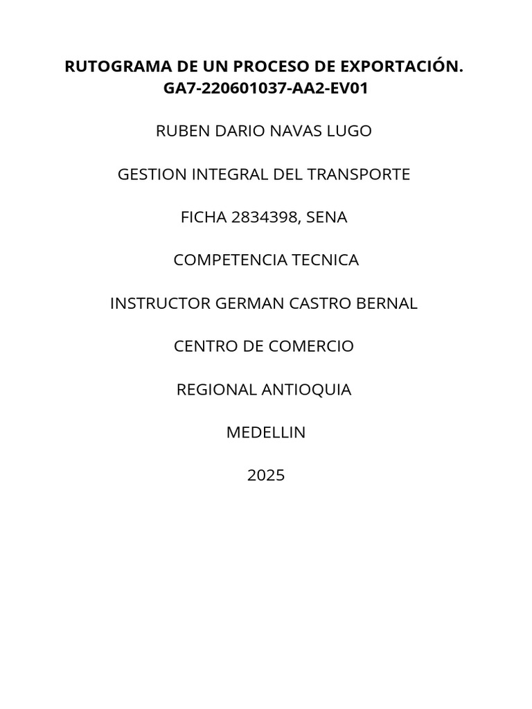 RUTOGRAMA DE UN PROCESO DE EXPORTACIÓN.