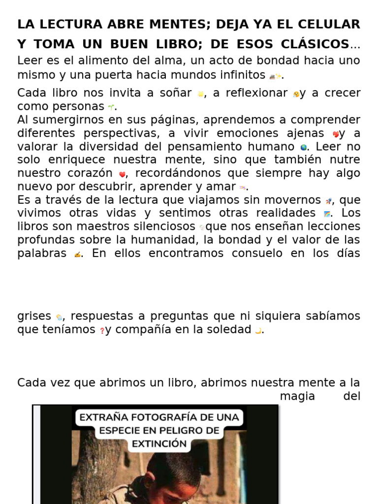 LA LECTURA ABRE MENTES; DEJA YA EL CELULAR