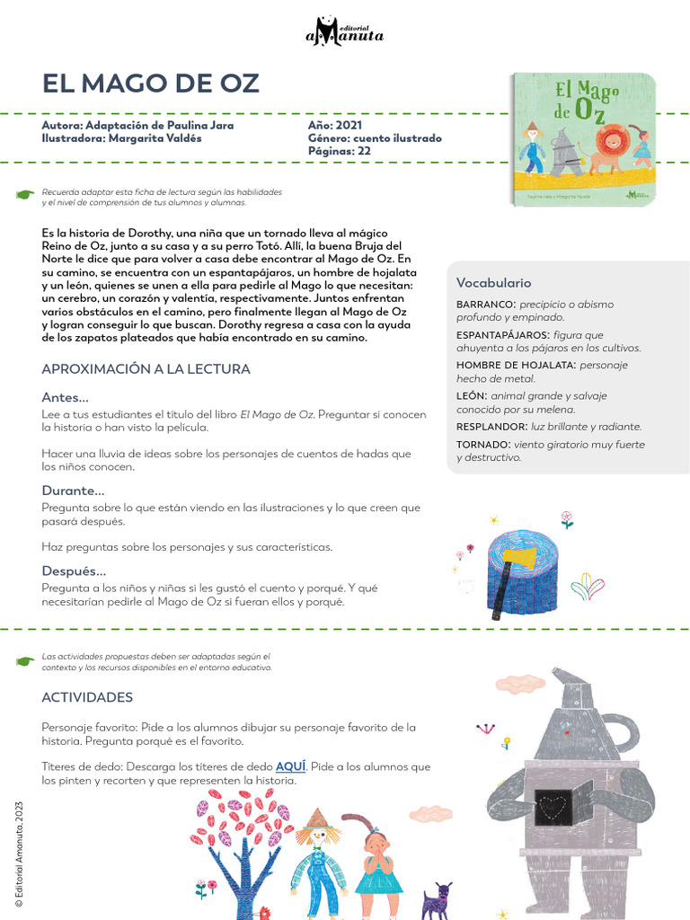 Lee a tus estudiantes el título del libro El Mago de Oz. Preguntar si conocen conocido por su melena.