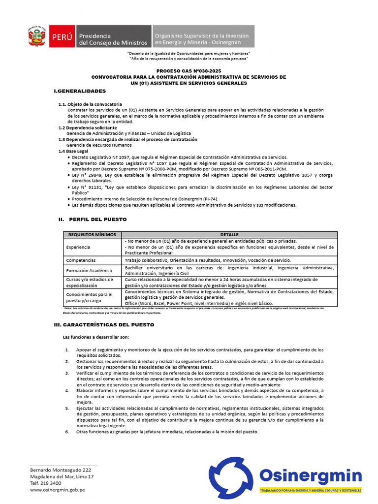 • Procedimiento Interno de Selección de Personal de Osinergmin (PI-74).