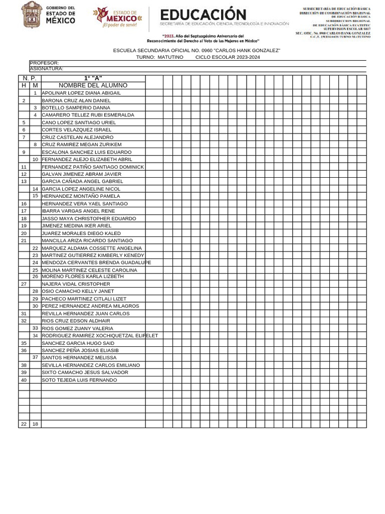 TURNO: MATUTINO CICLO ESCOLAR 2023-2024