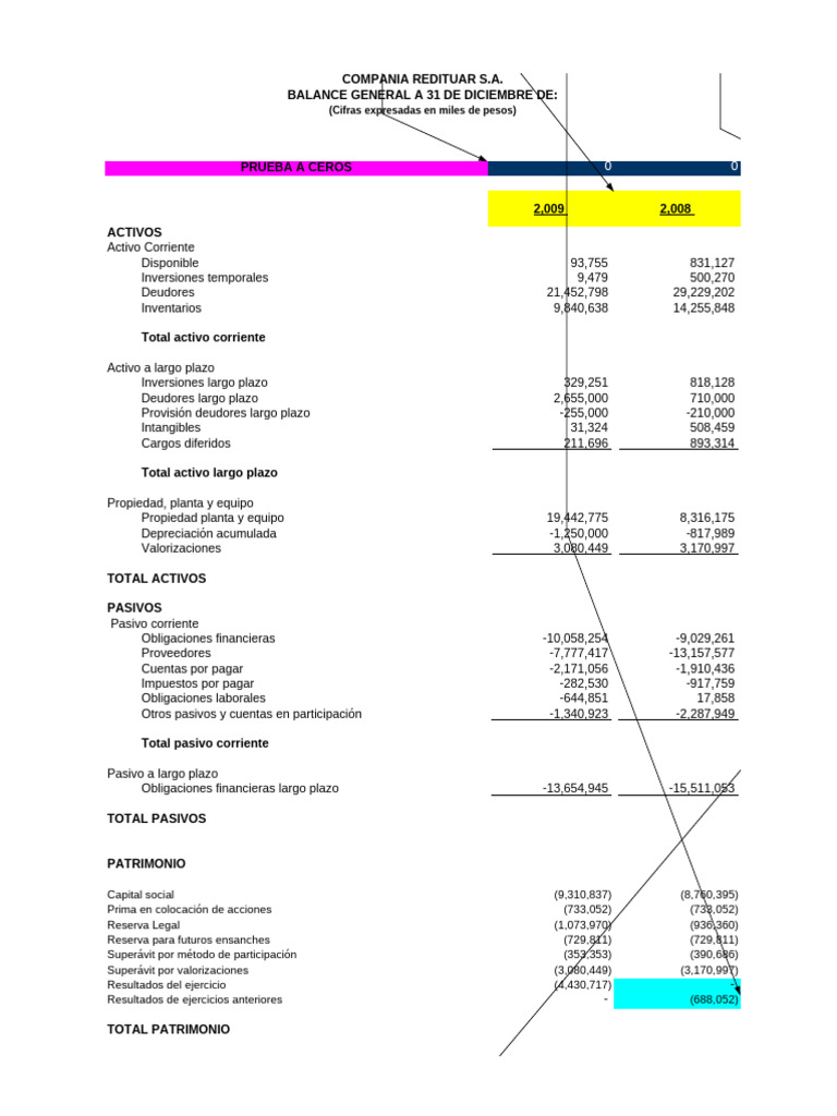 totales del balance ($0). último año). reversio