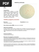 Bordetella Pertussis: cocobacilos pequeño, Gram – (color rojo, bipolar), no posee flagelos (inmóvil), aerobios obligatorios y anaerobios facultativos, no forma espora, es encapsulada,