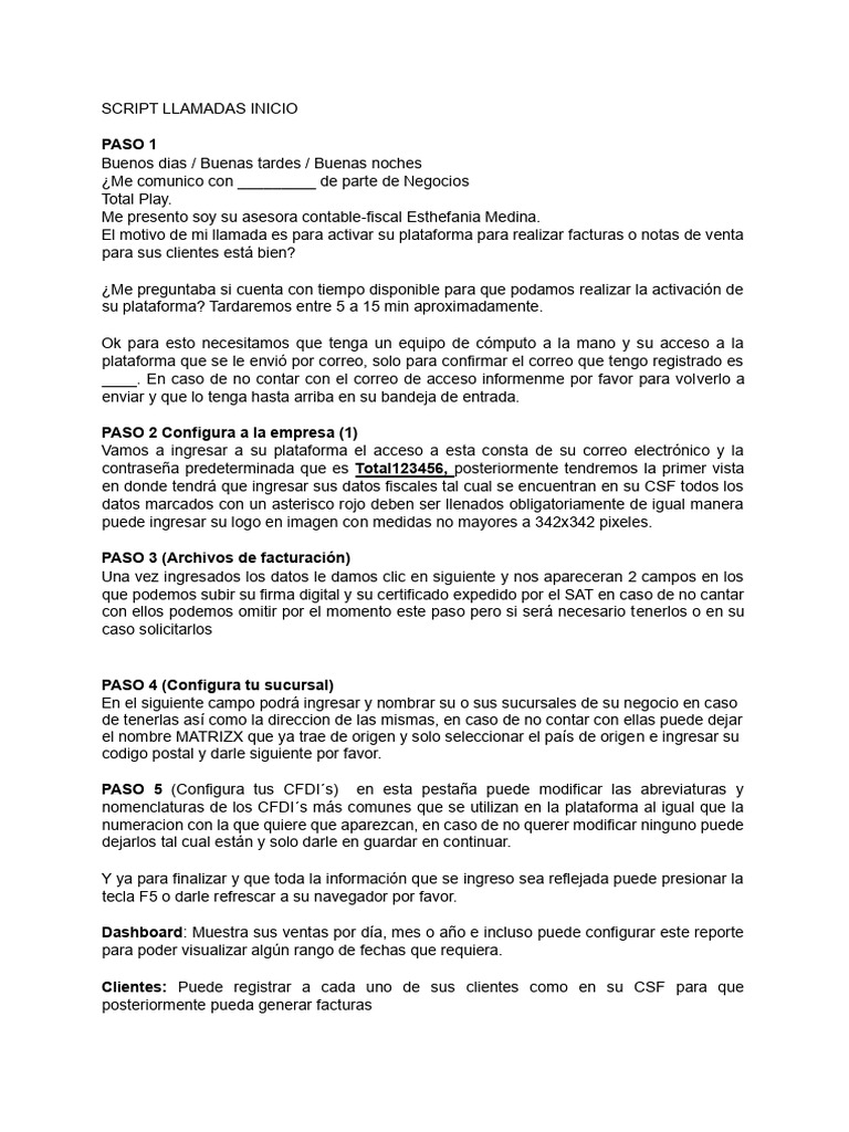 SCRIPT LLAMADAS INICIO